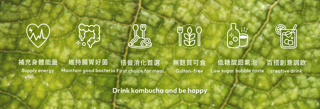 「康普茶KOMBUCHA」是在歐美流行多年的天然發酵多益生菌飲品,以茶葉為主,添入蔗糖和紅茶菌(乳酸菌、醋酸菌、酵母菌)共生發酵。發酵完成的益菌穩定腸胃平衡,二次發酵後產生的碳酸氣泡、酸甜風味也讓康普茶被稱為「茶飲界香檳」。