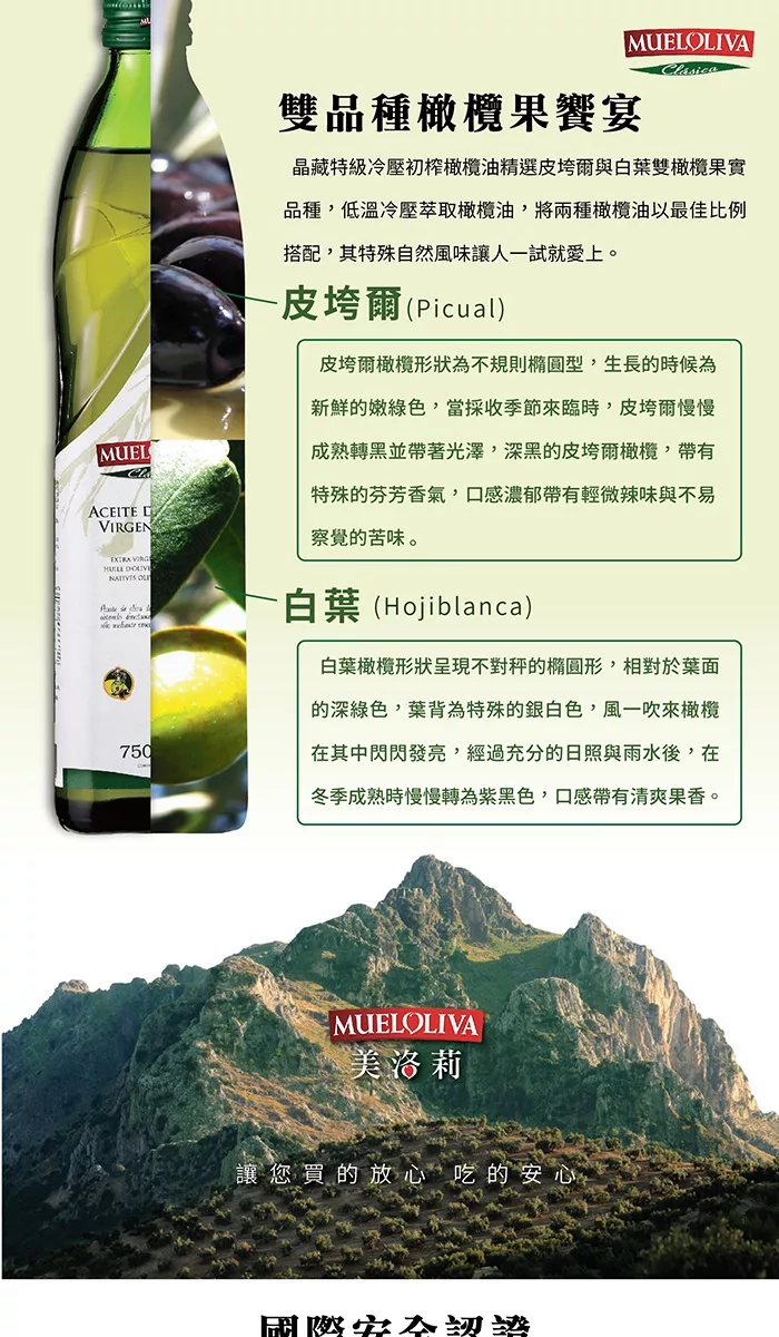 西班牙【美洛莉】晶藏 特級初榨冷壓橄欖油(500mlX1瓶)品名:【Mueloliva美洛莉】晶藏 特級初榨冷壓橄欖油